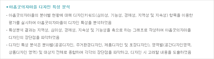 지역 특성을 반영하여 심미성을 제고하고, 제품의 부가가치 향상을 고려한 디자인 계획 수립 |