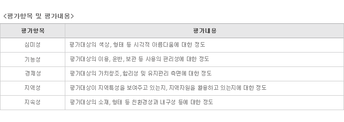 지역성 측면에서 매우 높은 가치를 지니고 있는 것으로 나타나고, 심미성과 경제성 측면에서도 보통 이상으로 나타났으나, 기능성과 지속성 측면에서는 상대적으로 부족함을 보여주고 있음 |