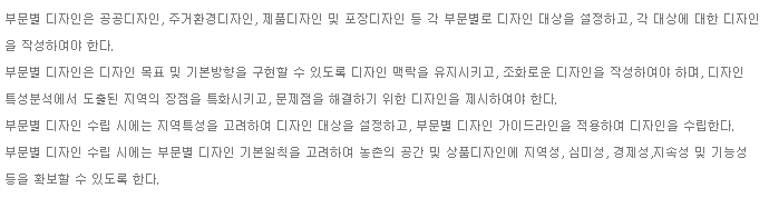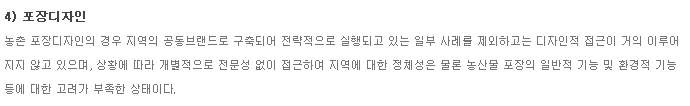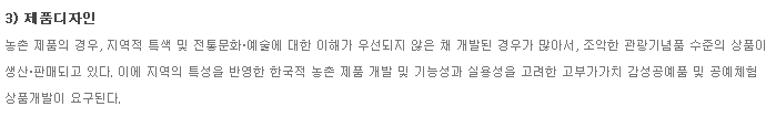 다. 농촌의 지역적 특성을 반영한 독창적 디자인의 다양한 제품 디자인 개발이 요구됨 |