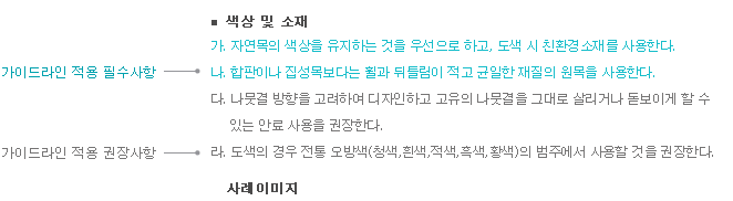 | 색채 및 형태 | 특산가공품 포장디자인을 위한 색채적용범위 및 형태를 규정한다. |