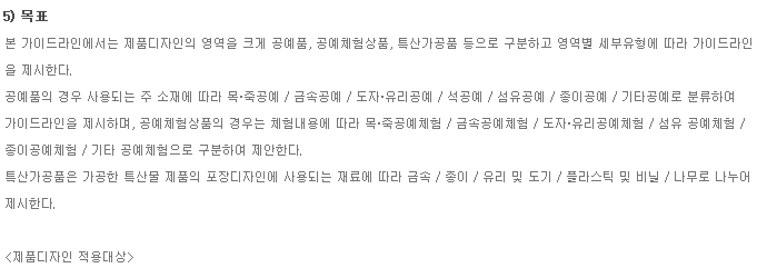 | 형태 및 규격 | 공예품의 디자인 컨셉, 형태 및 규격을 규정한다. |