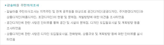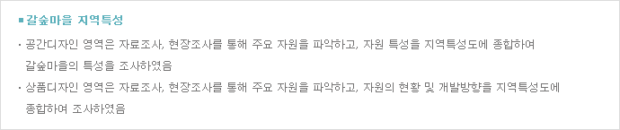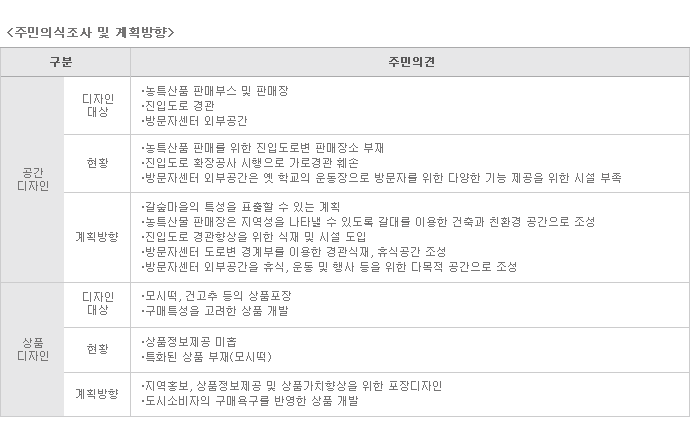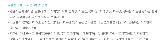 상대적으로 부족한 지역성, 심미성 및 지속성을 보완할 수 있는 디자인 계획 수립 |